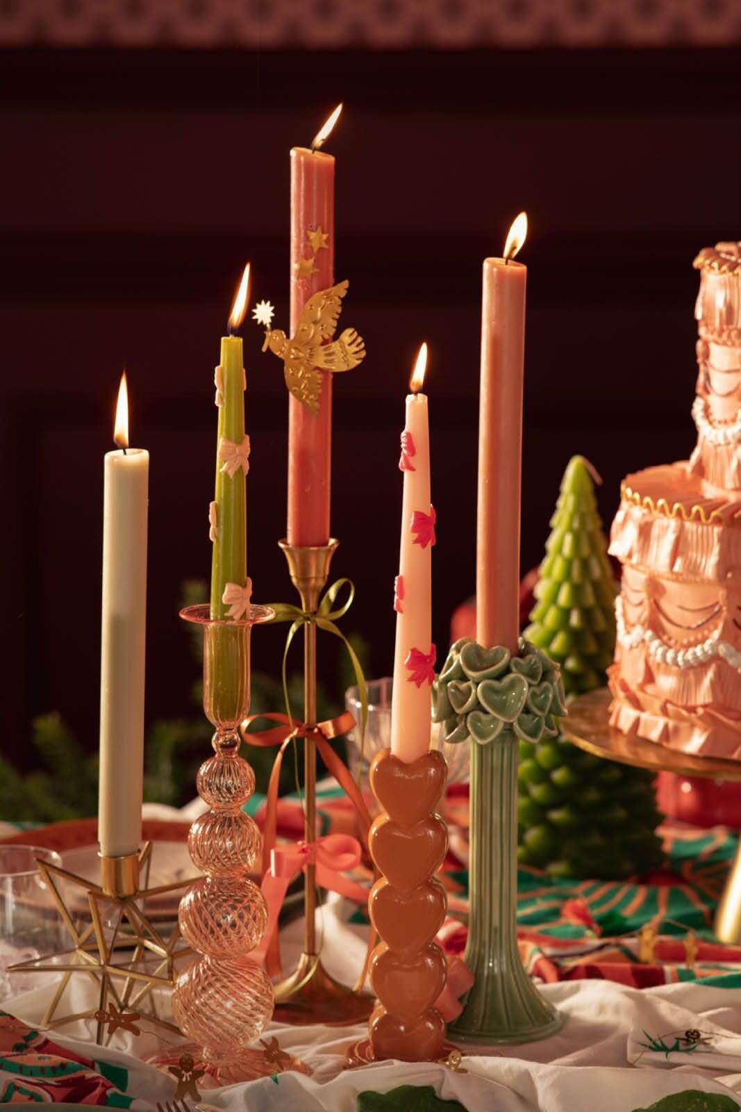Lichtroze sierkaarsen met strikjes