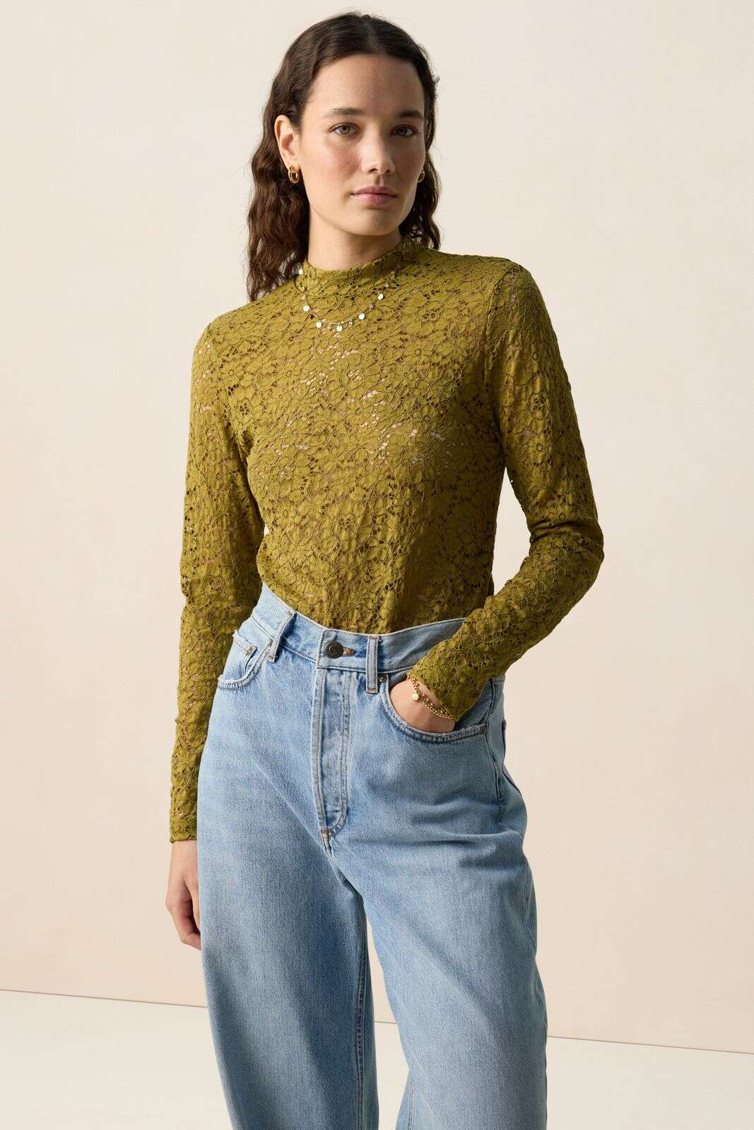 Donkergroene kanten top