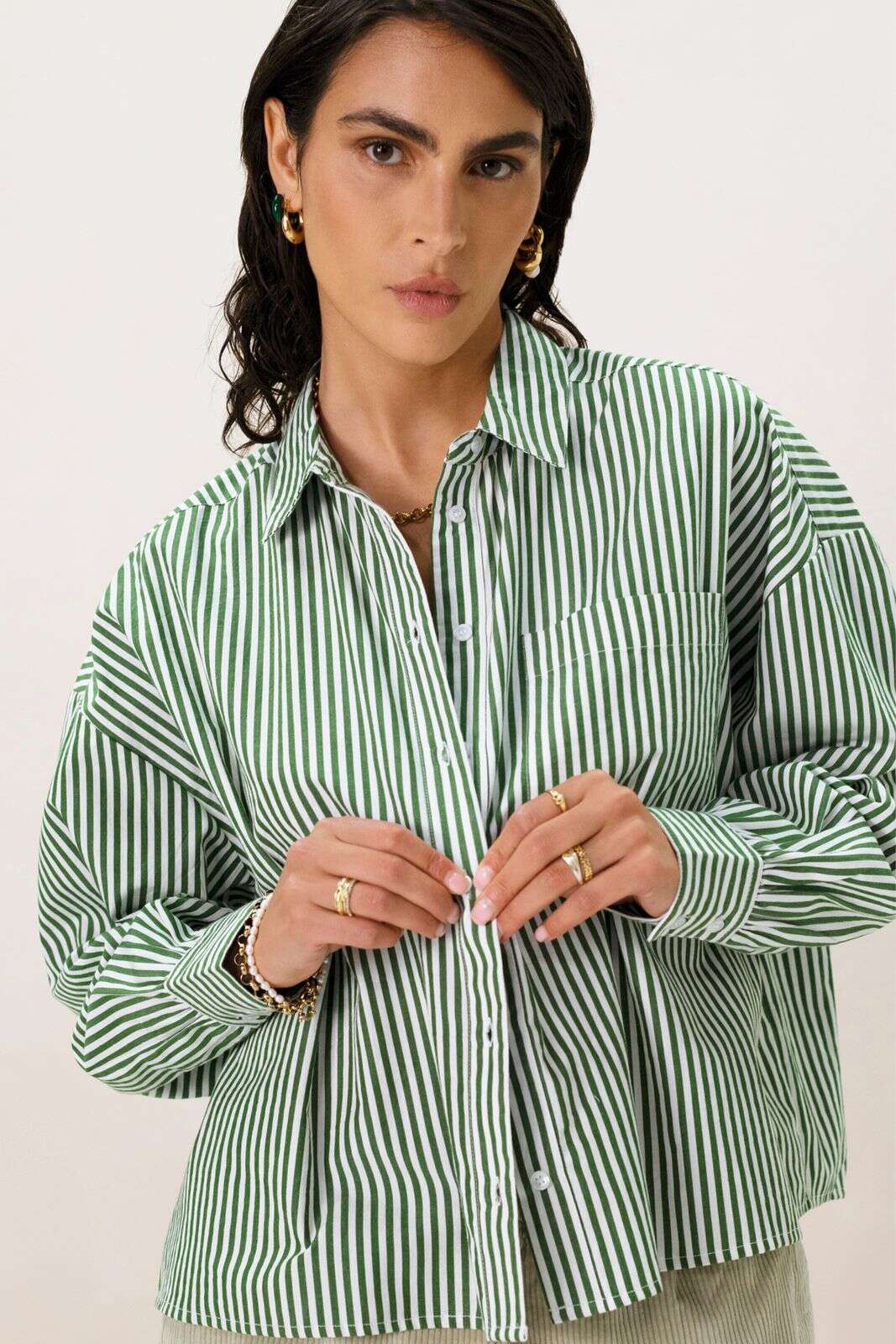Groen gestreepte boxy blouse