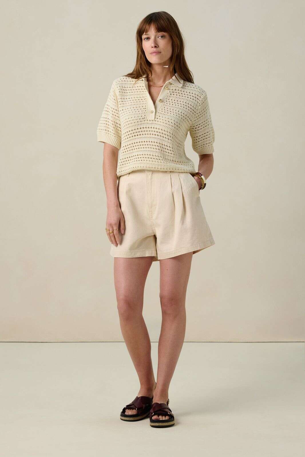 Beige denim shorts