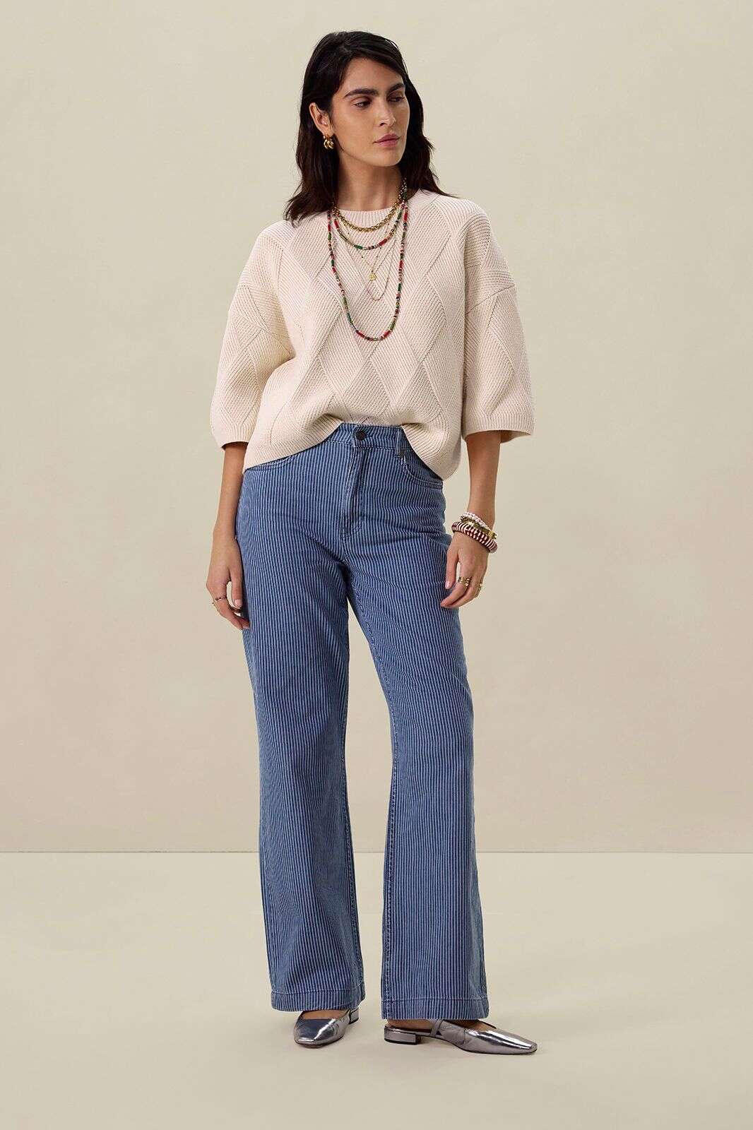 Betim gestreepte high waist wide leg jeans