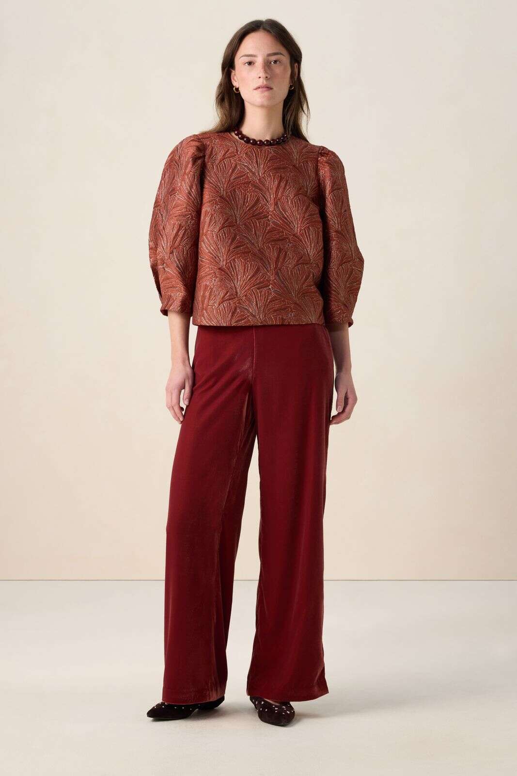 Rode velvet wide leg broek