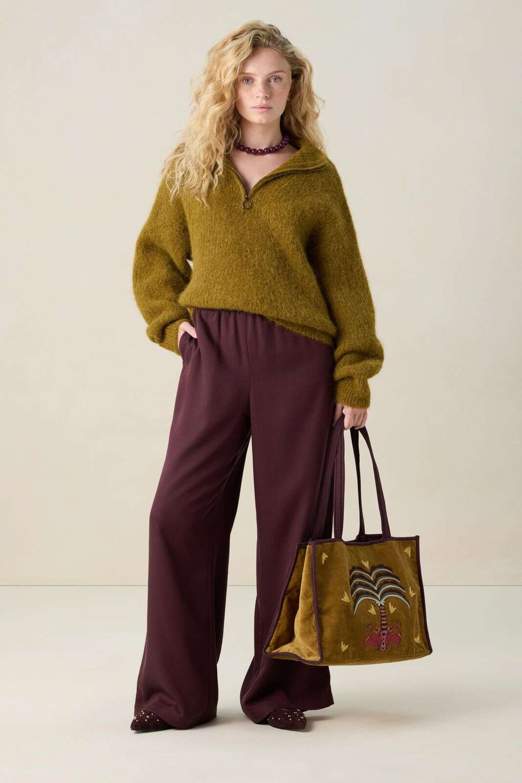 Donkerrode high waist wide leg broek
