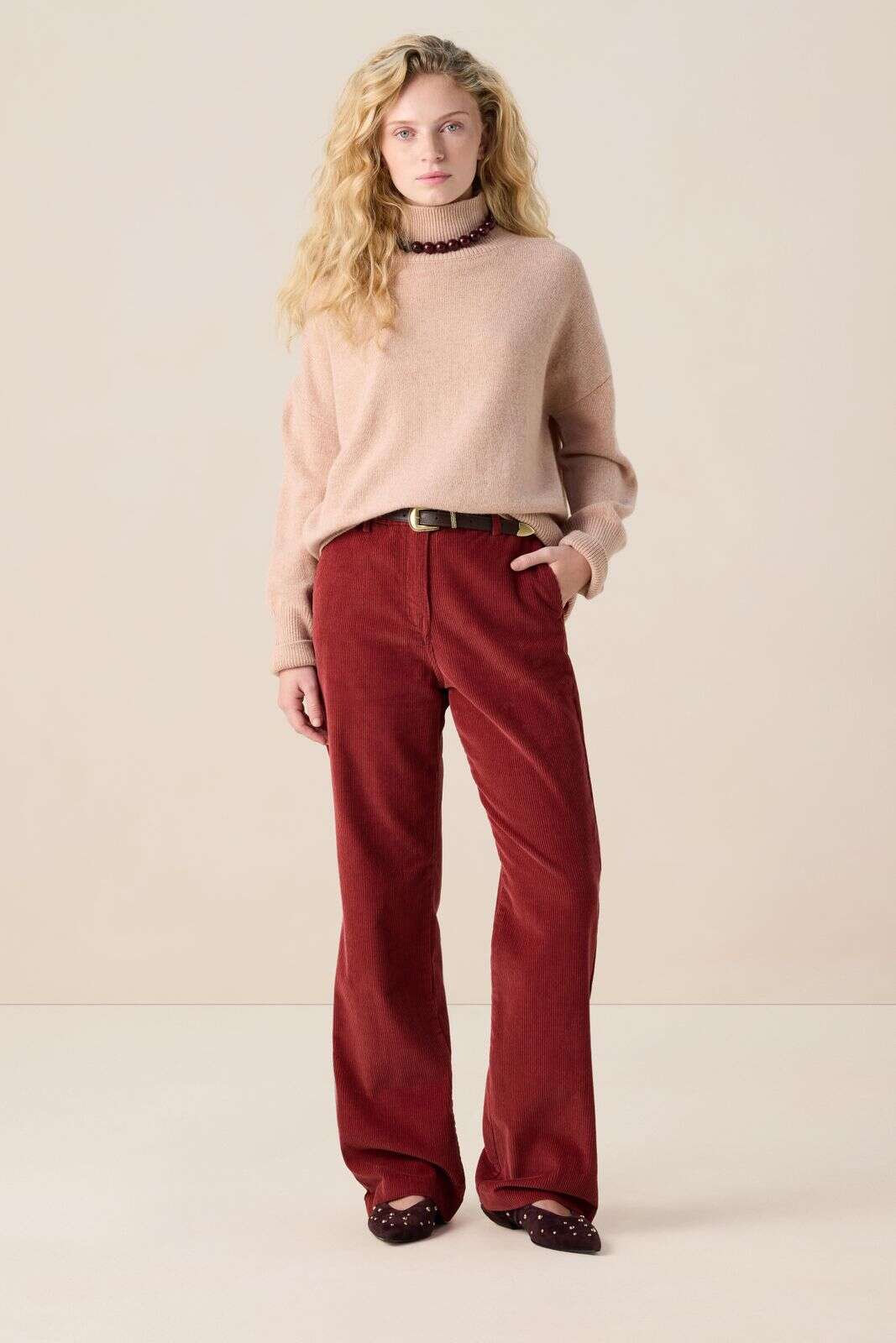 Donkerrode high waist corduroy broek