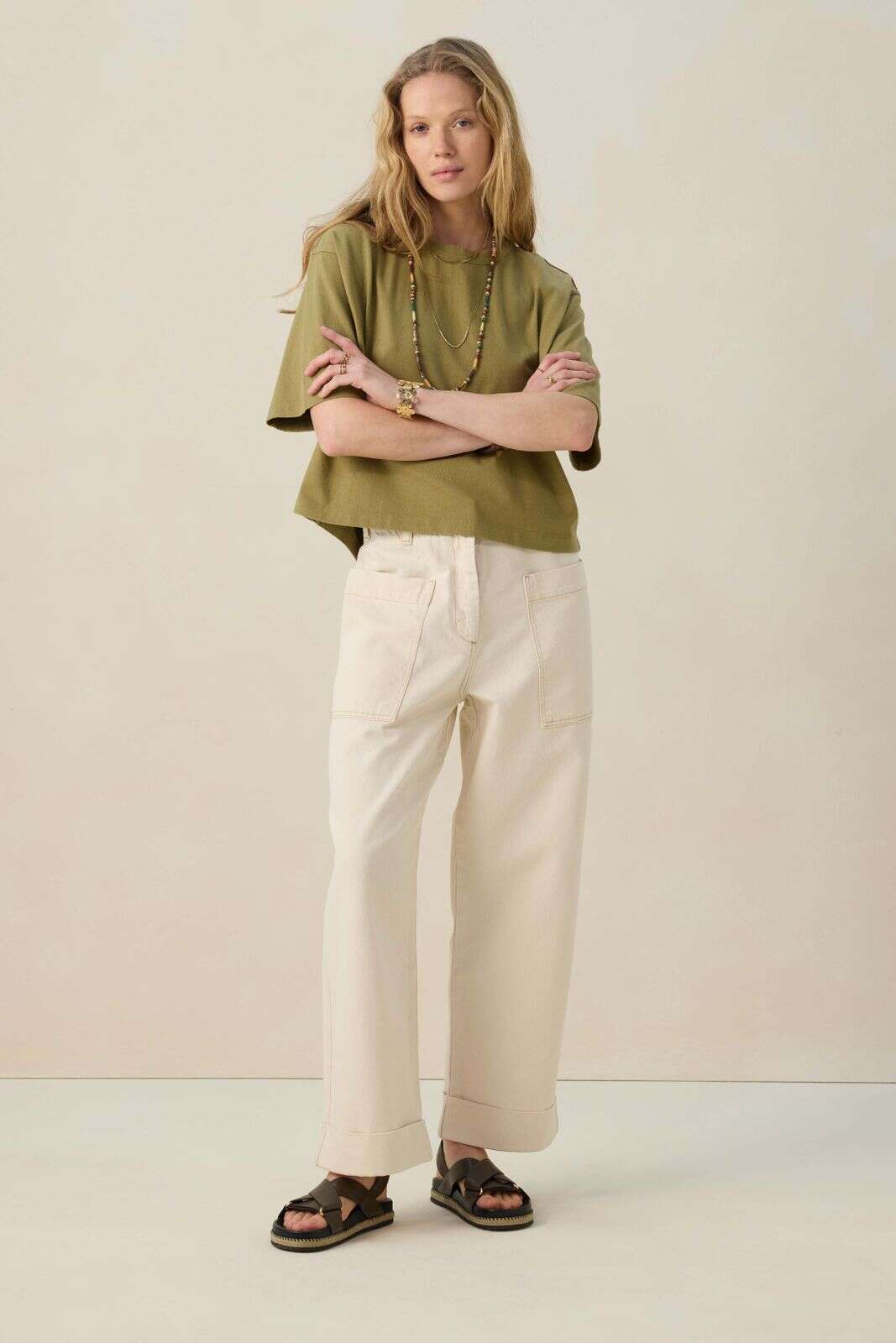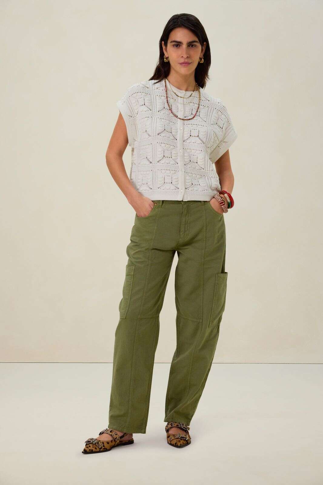 Beige mid waist workwear broek