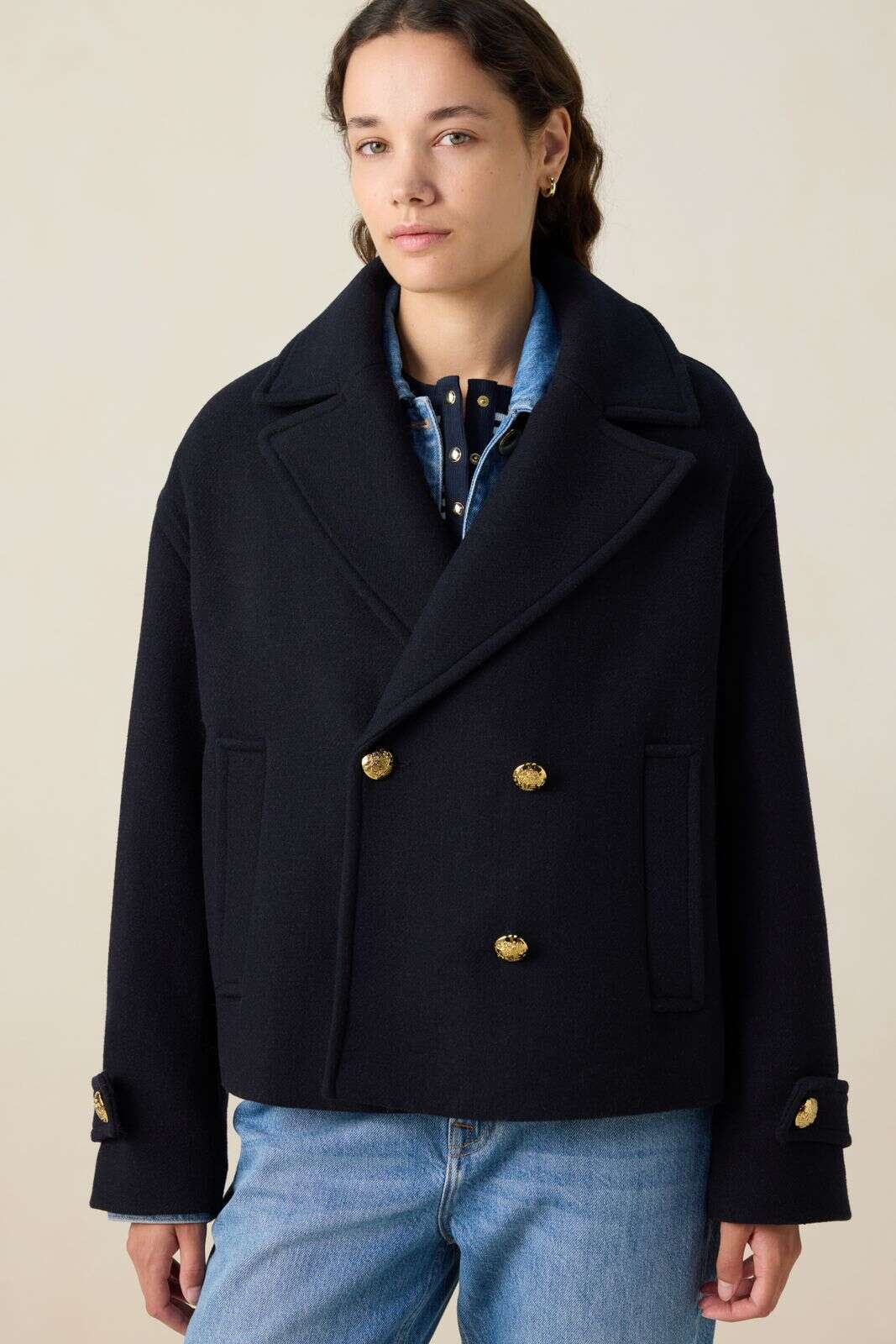 Donkerblauwe wollen jas