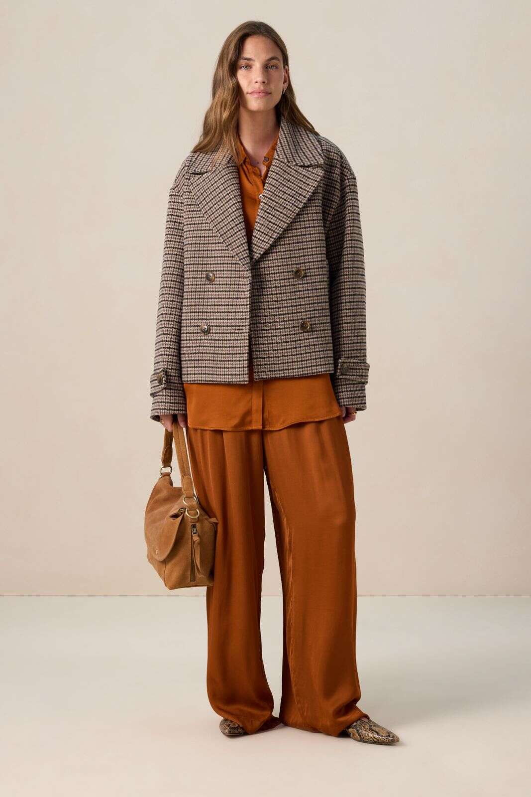 Bruine wollen geruite jas