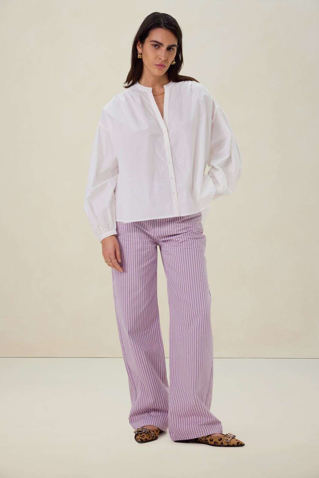 Lichtpaarse mid waist wide leg jeans met strepen