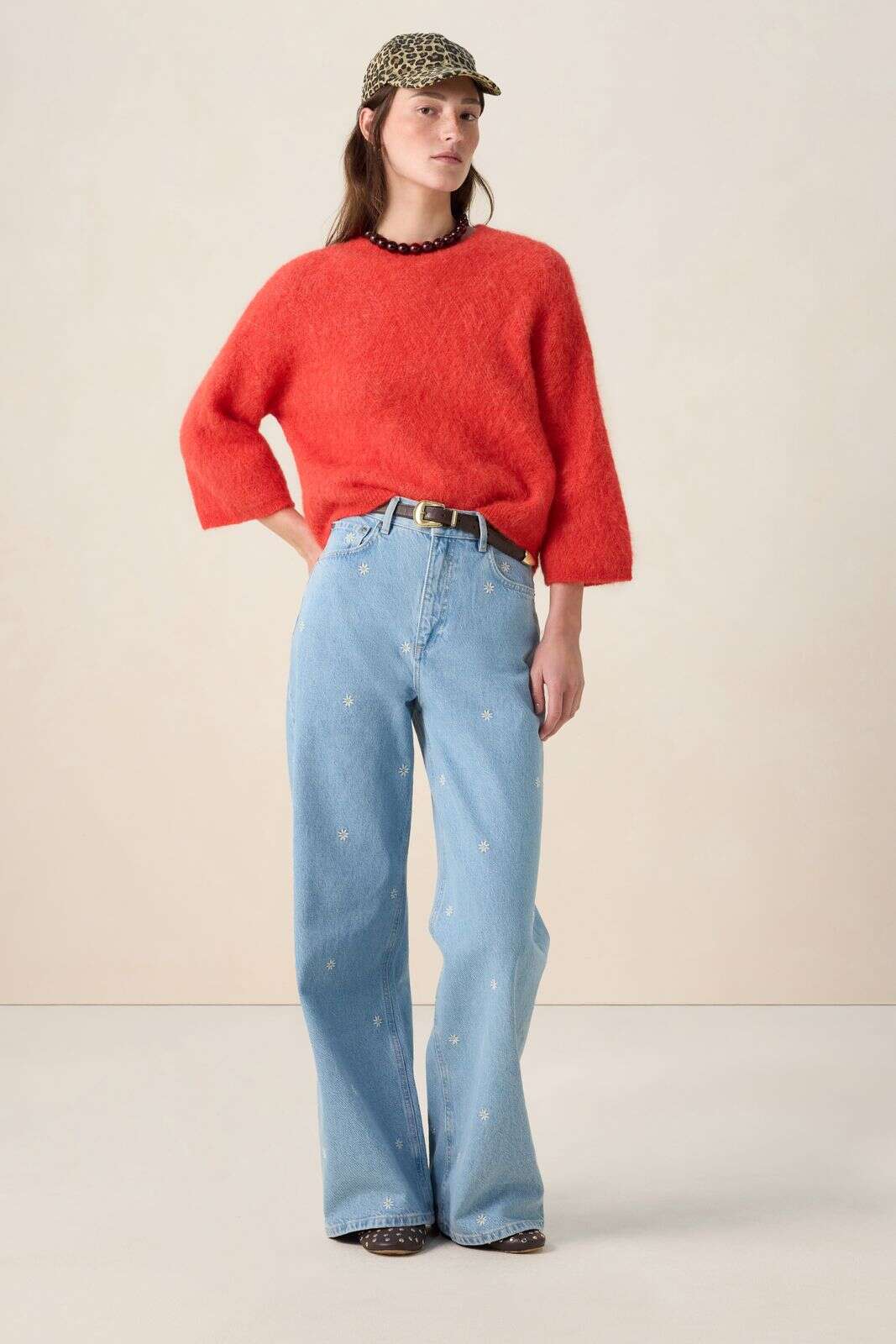 Blauwe high rise wide leg jeans met bloemen