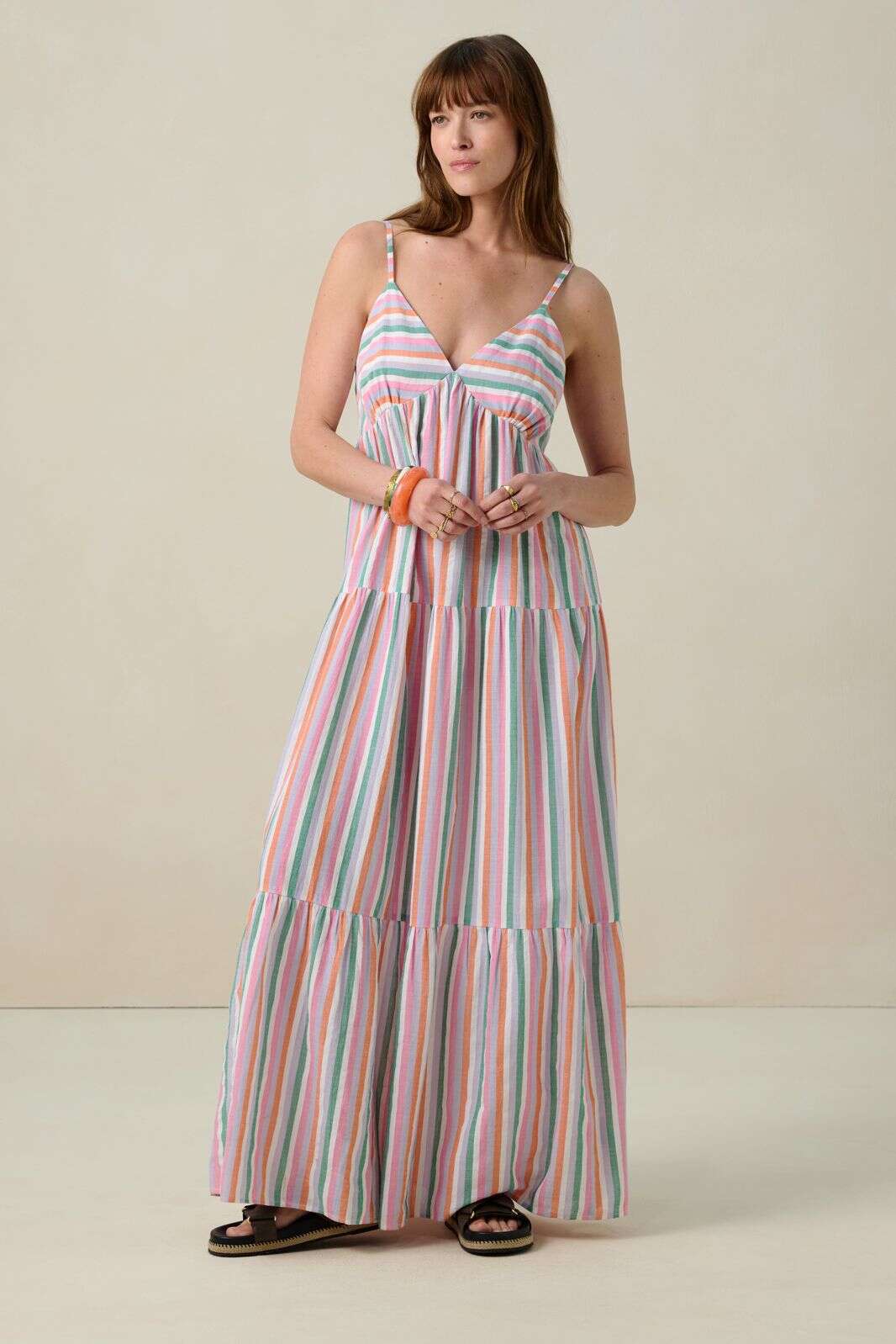 Multicolour gestreepte maxi jurk