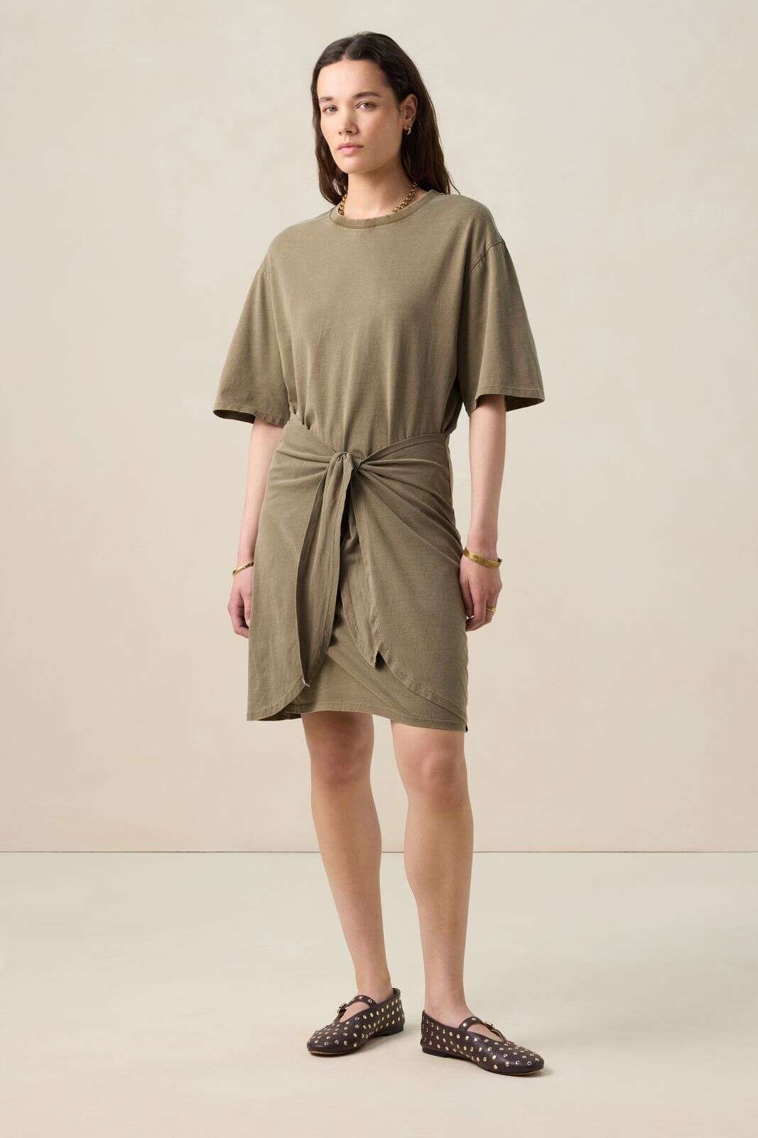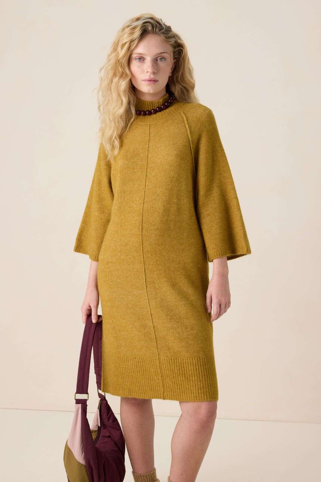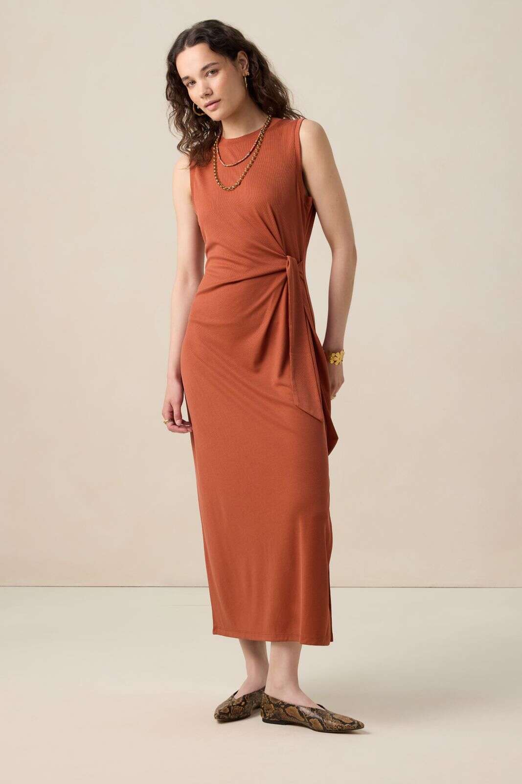 Goudbruine midi jurk