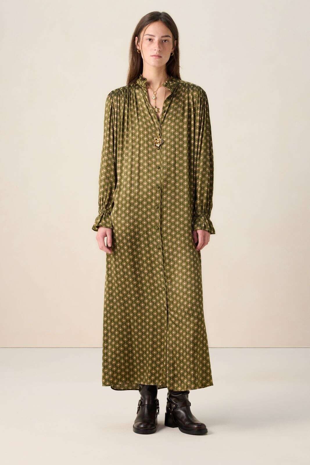 Donkergroene maxi-jurk met embroidery