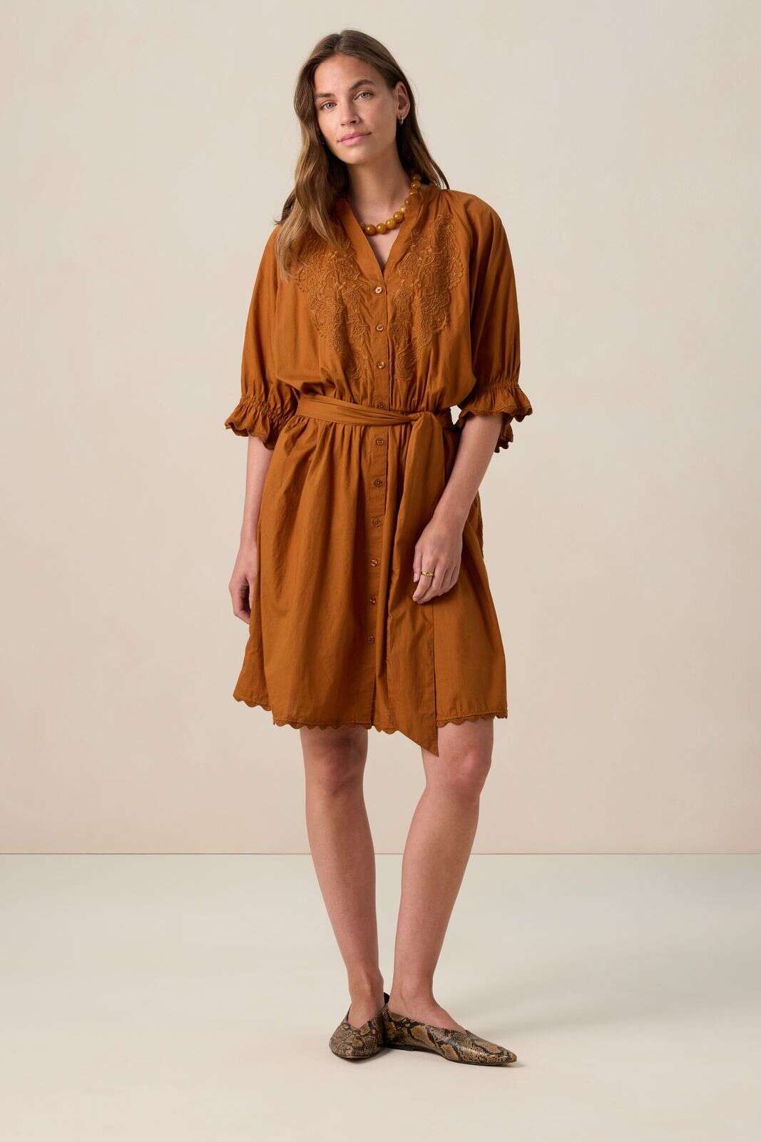 Bruine jurk met embroidery