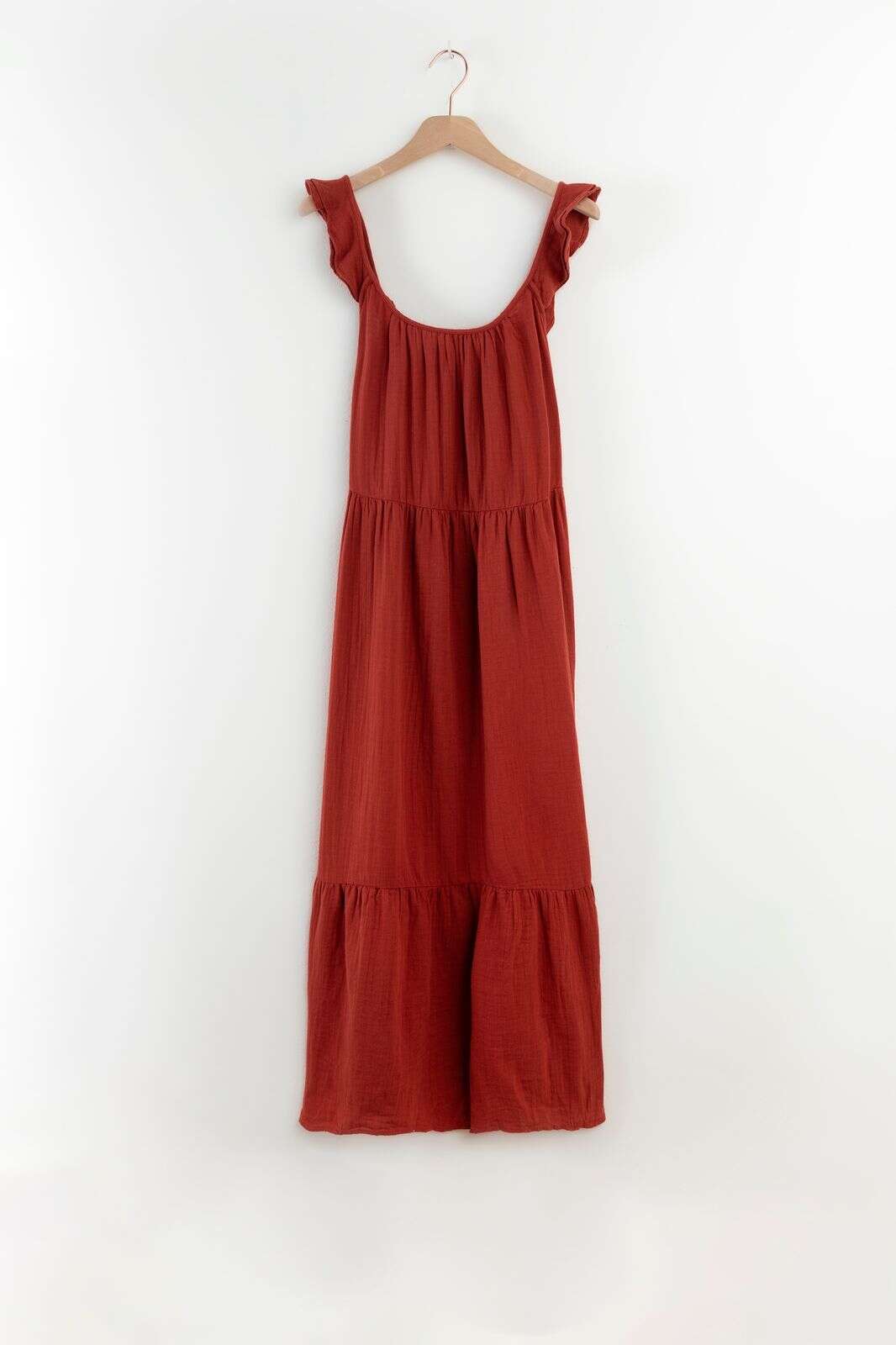 Rode A-lijn maxi jurk met ruffle details