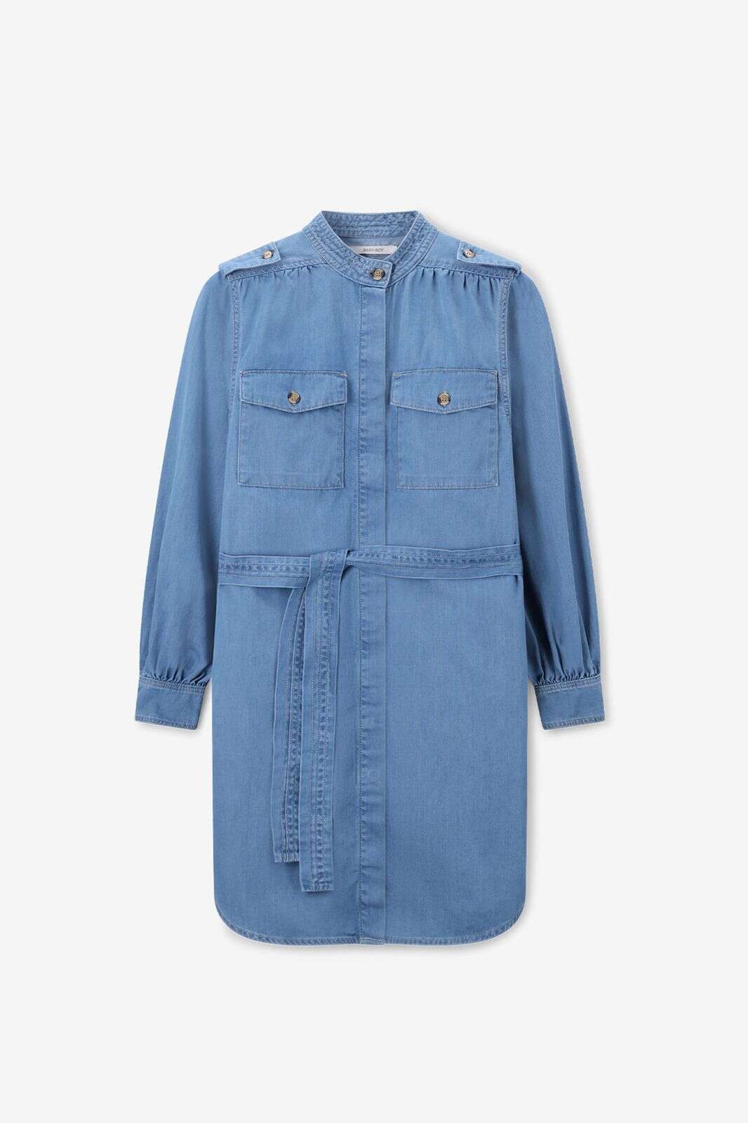 Blauwe denim jurk met pofmouwen