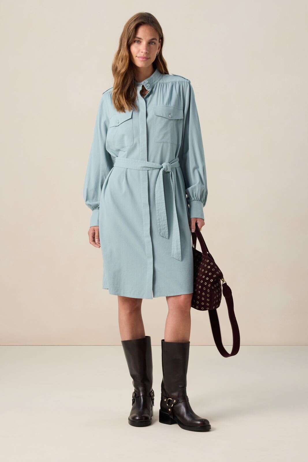 Blauwe midi jurk met ceintuur