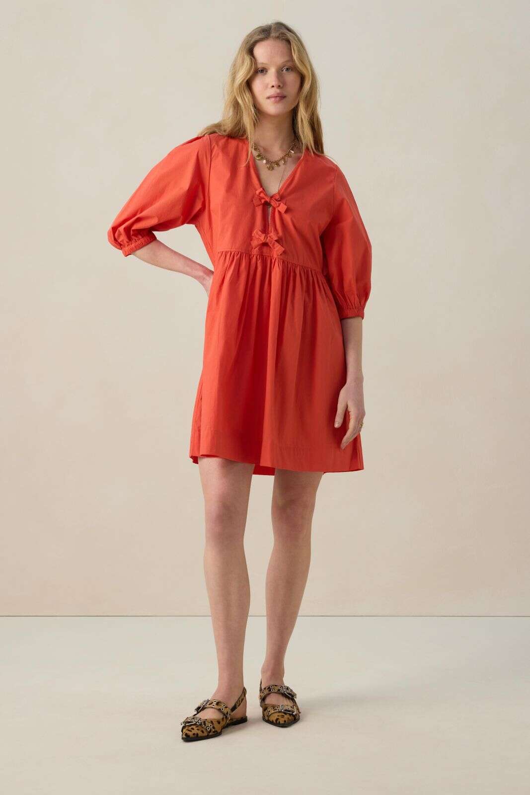 Rode jurk met pofmouwen
