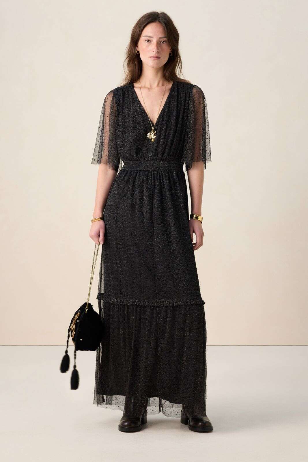Zwarte mesh maxi jurk