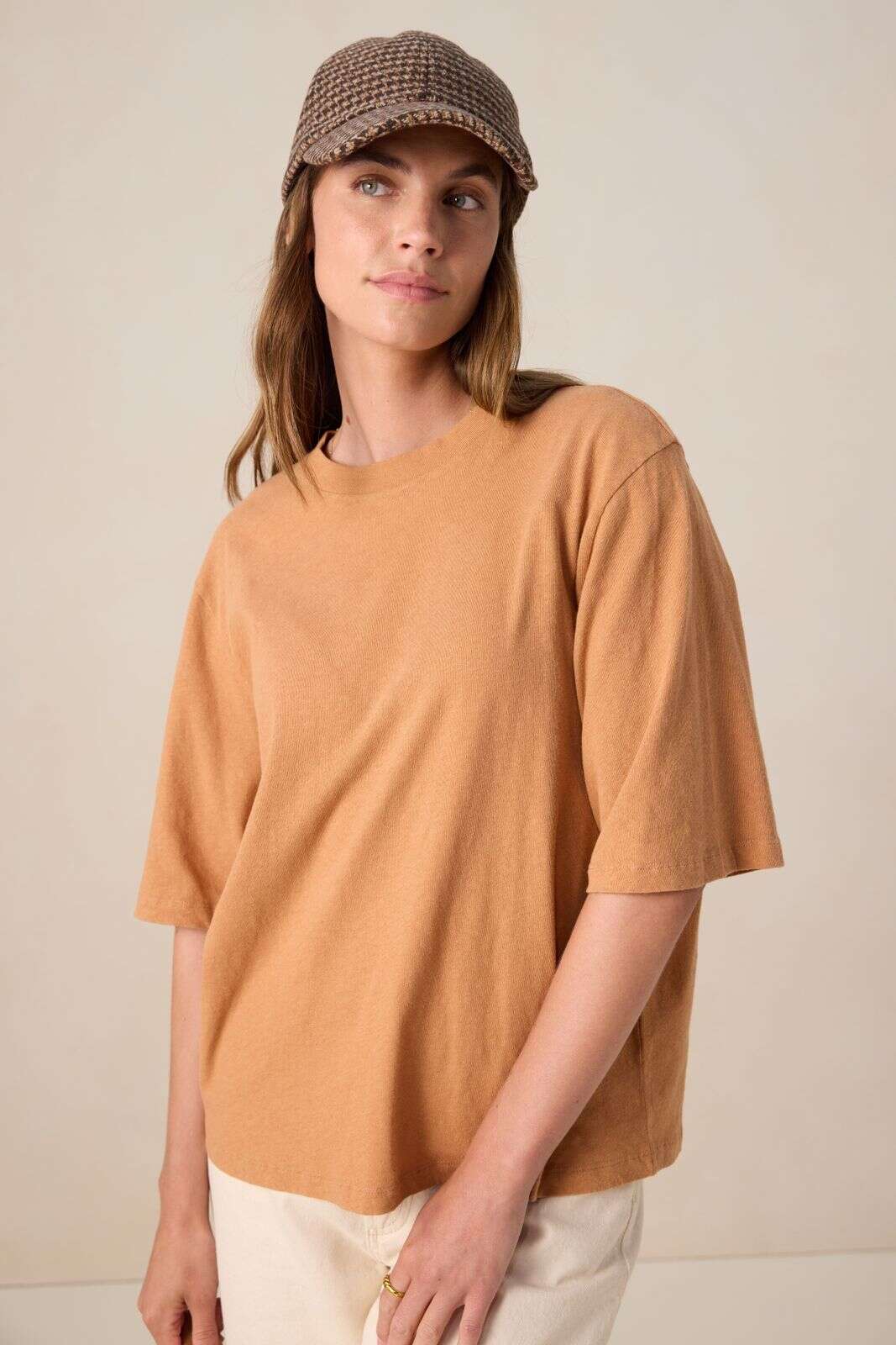 Lichtbruin linnenmix T-shirt