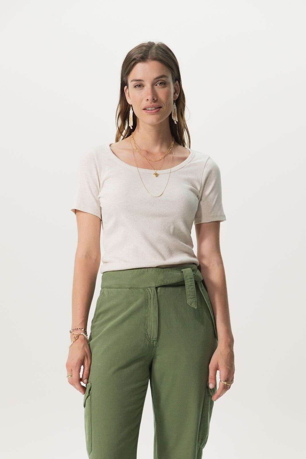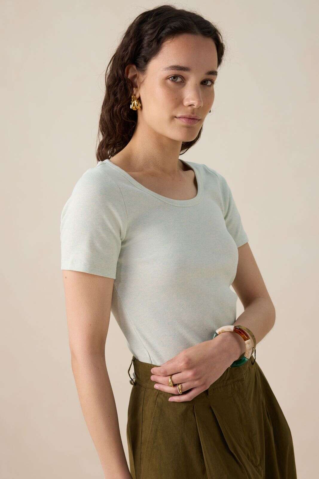 Beige basic stretch rib t-shirt