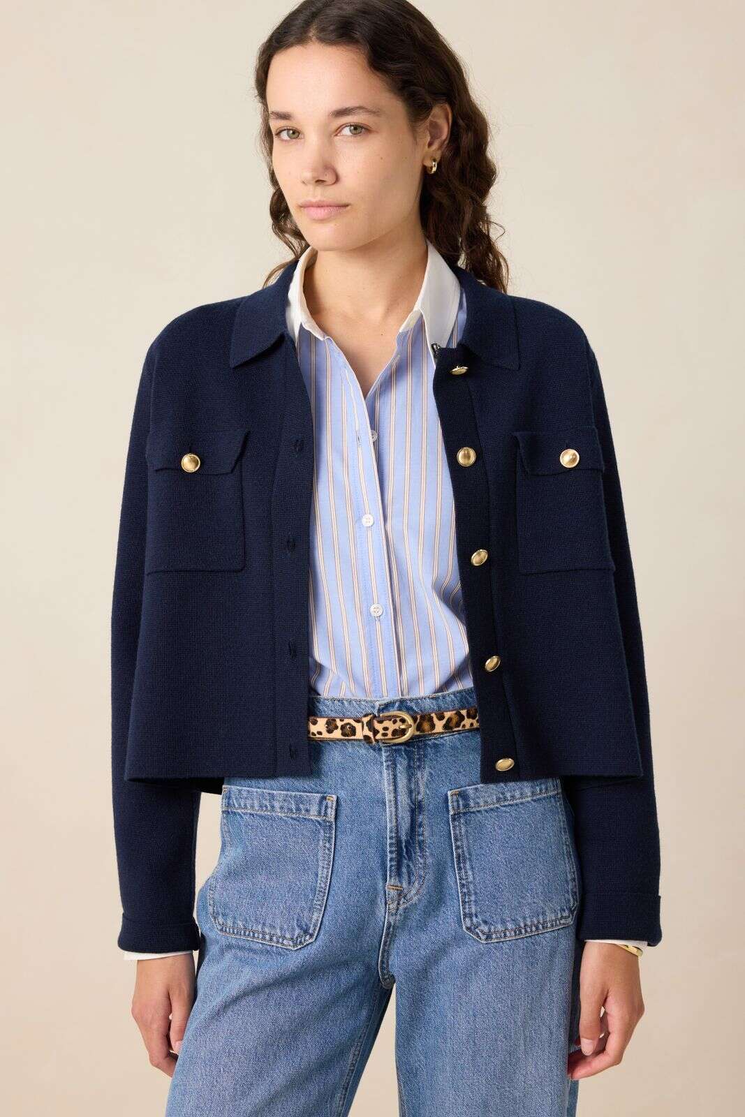 Donkerblauwe coltrui met knopen
