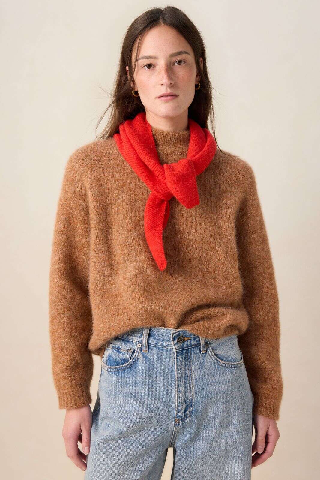 Bruine wollen trui met hoge hals