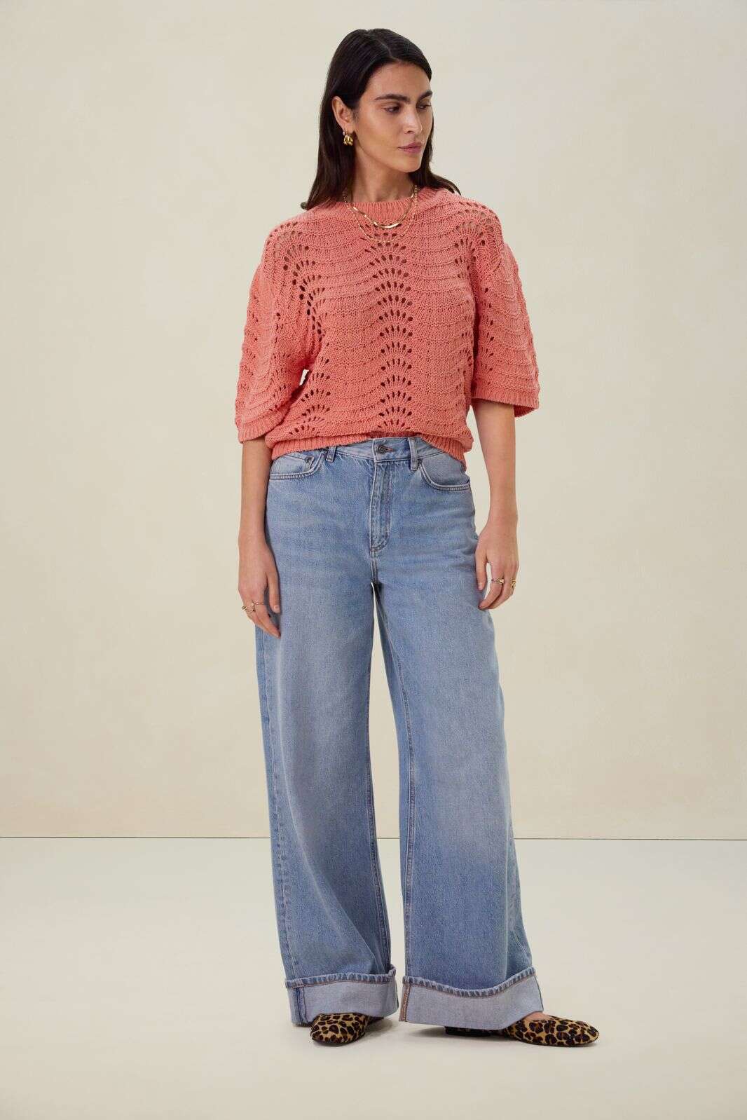 Oranje rode trui met korte mouwen