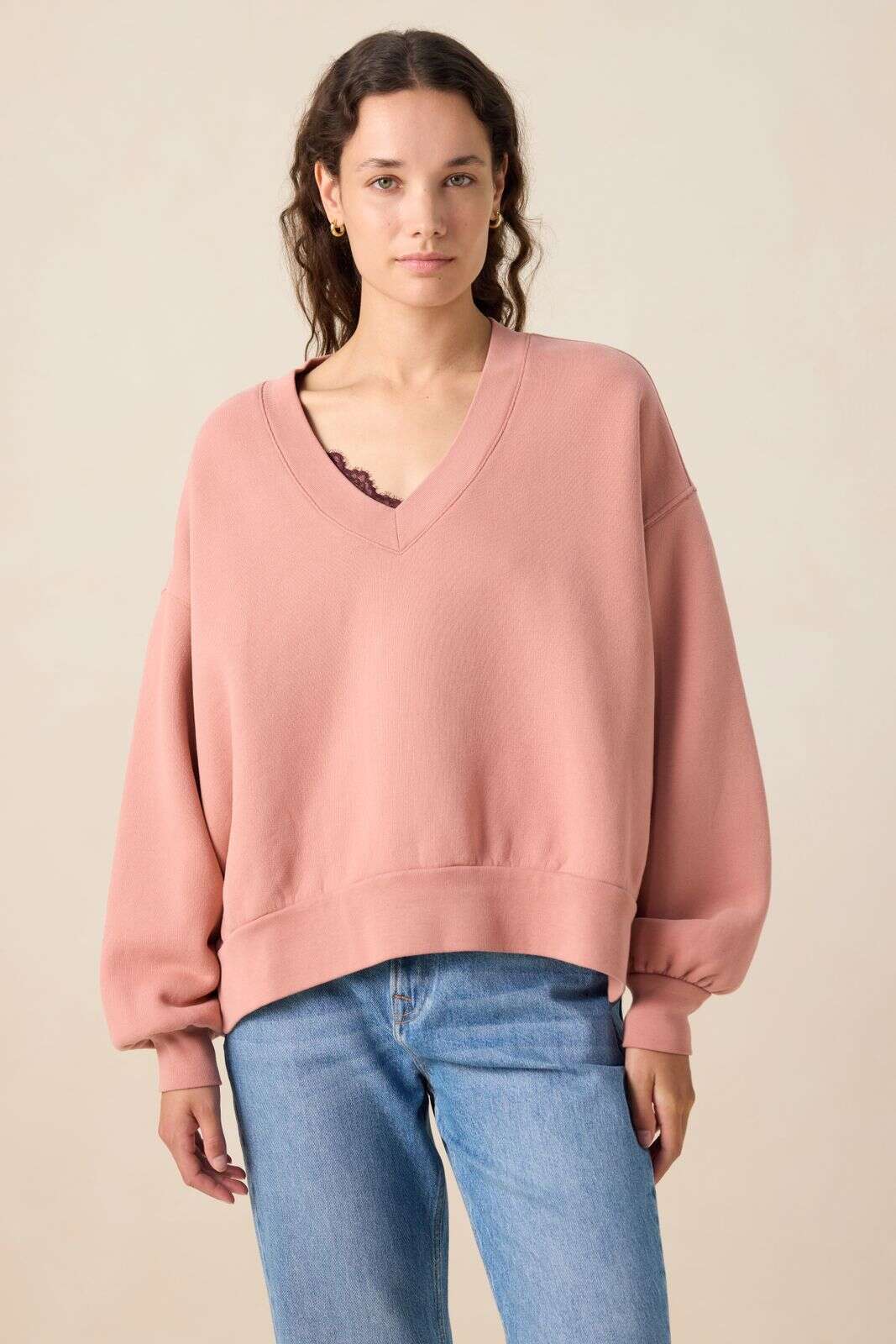 Roze sweater met V-hals