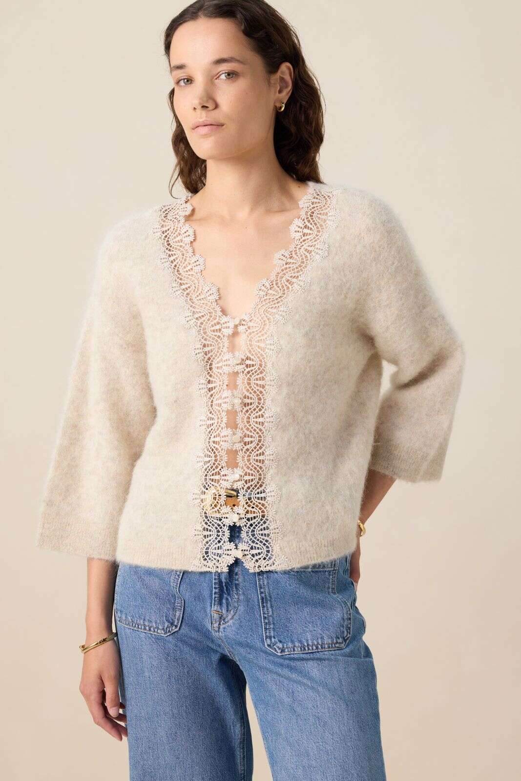 Beige reversible trui met kant