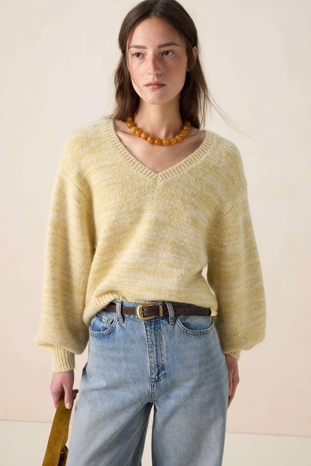 Lichtgele sweater met v-hals