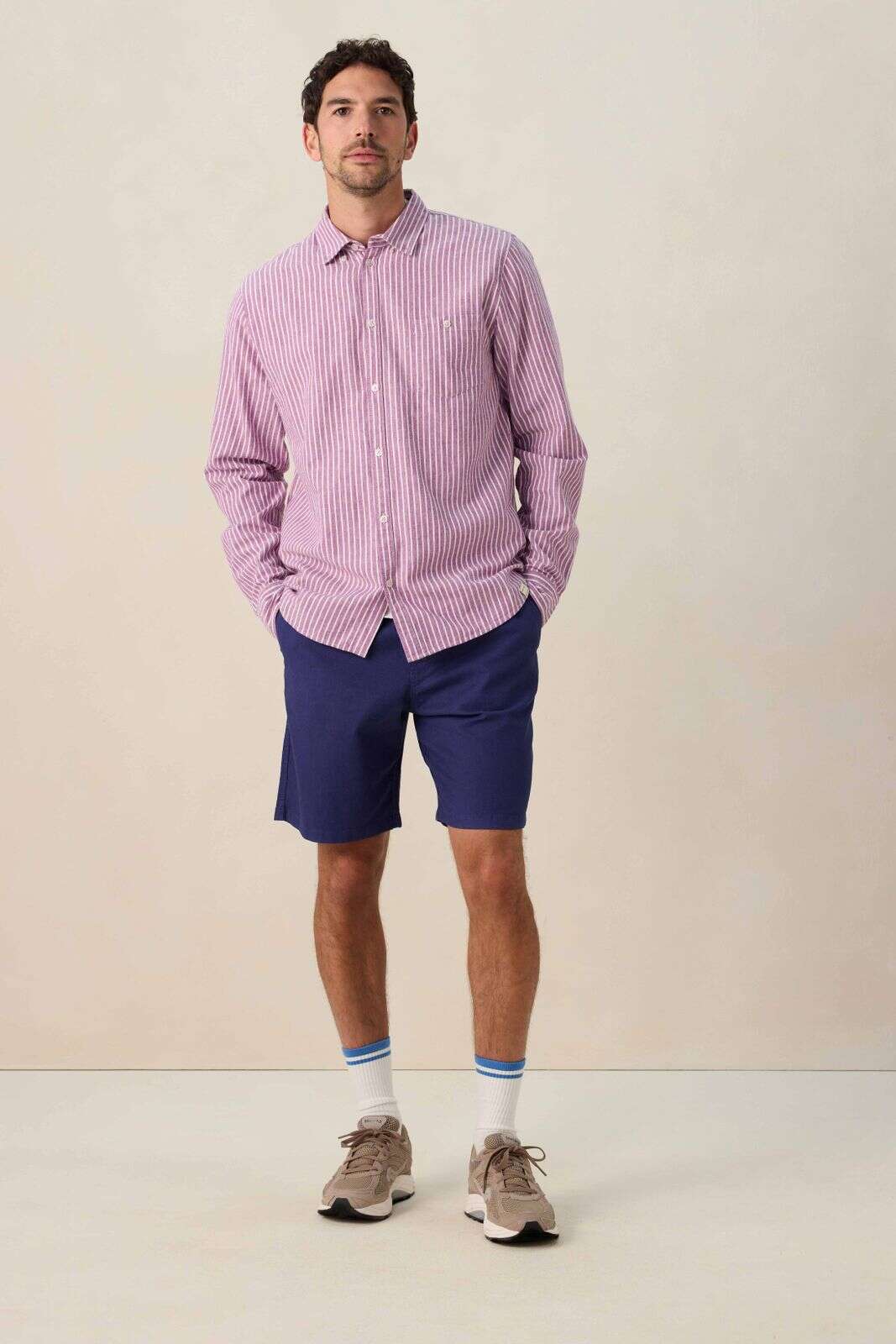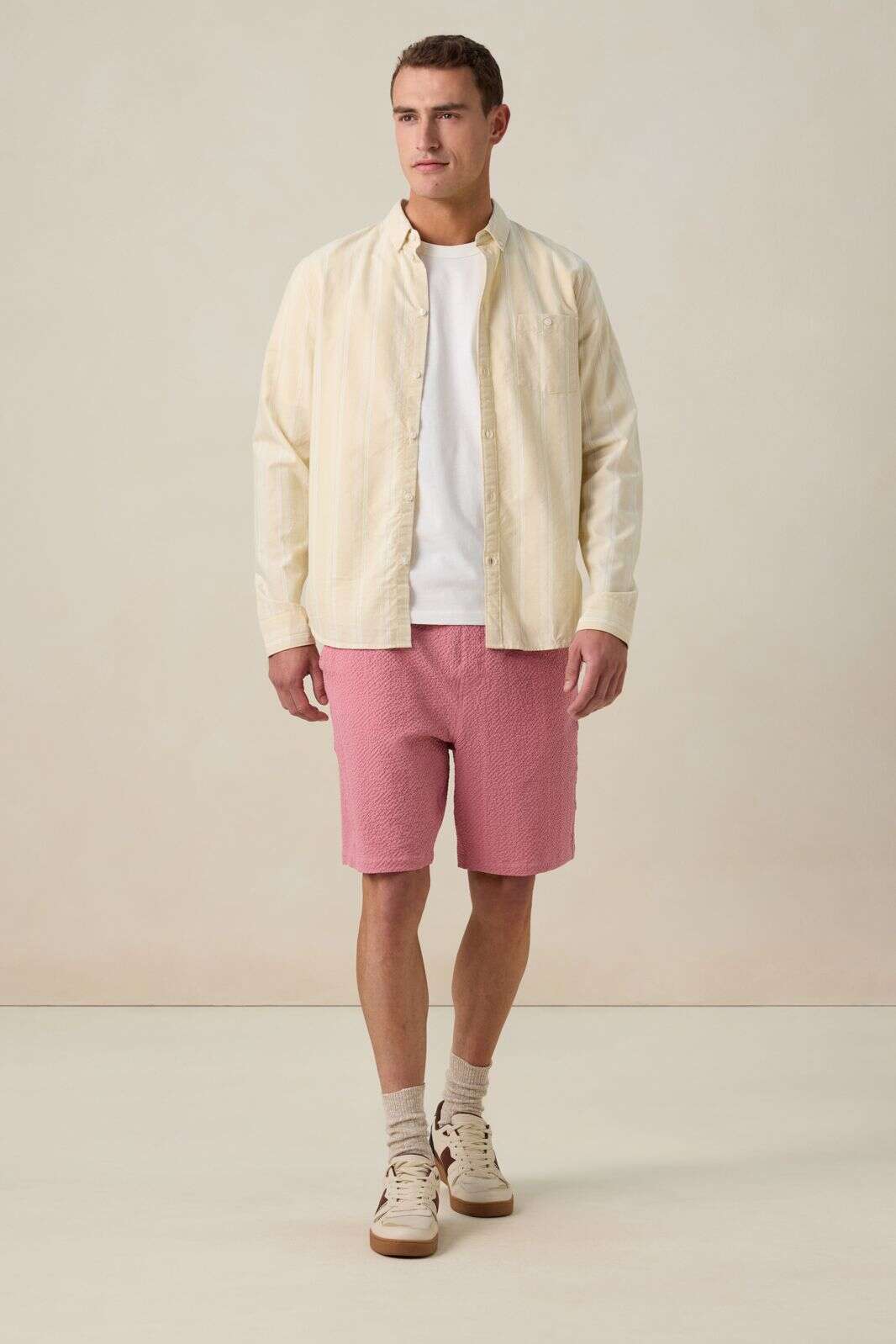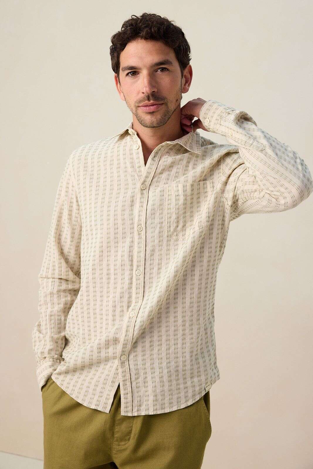 Beige gestreept overhemd