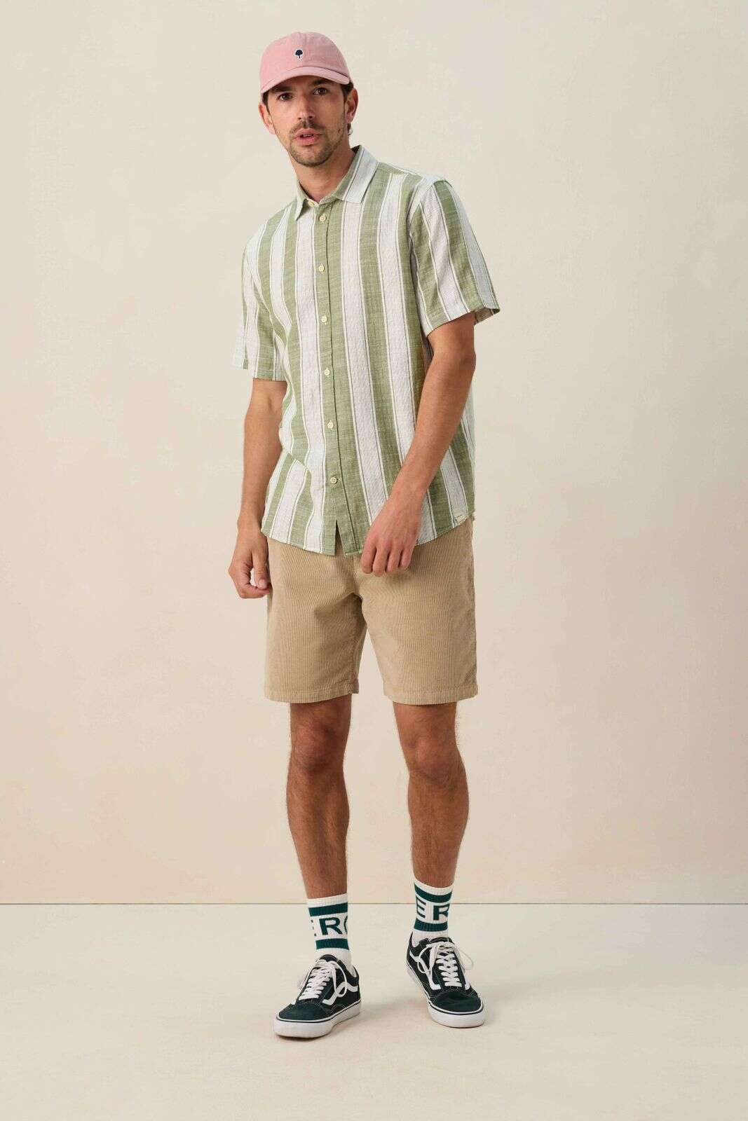 Groen gestreept overhemd met korte mouwen