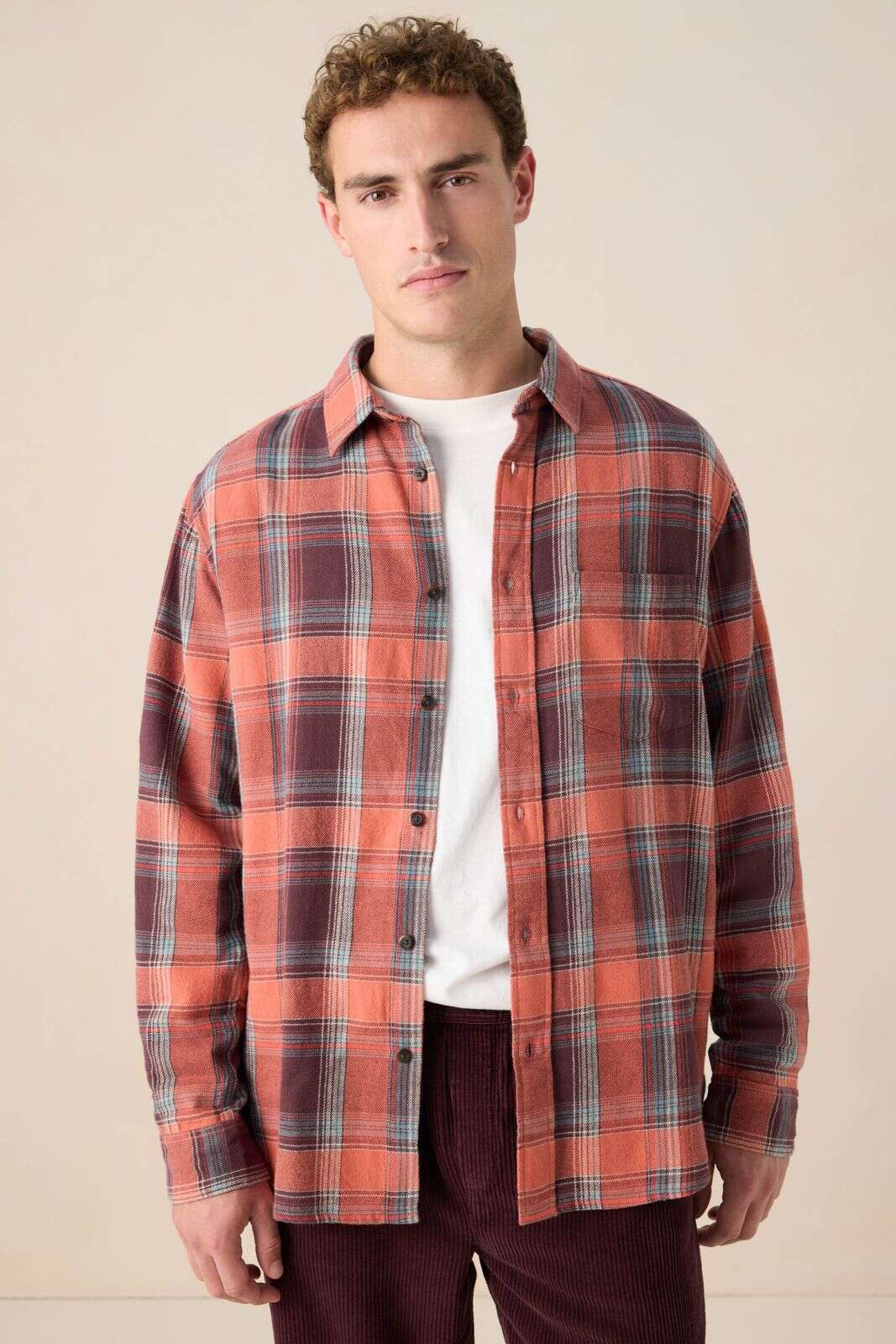 Oranje geruit overhemd
