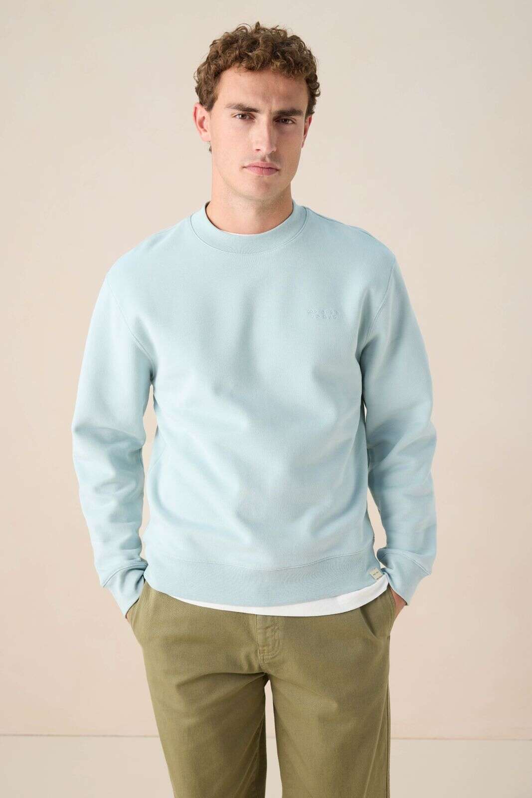 Lichtblauwe sweater met artwork