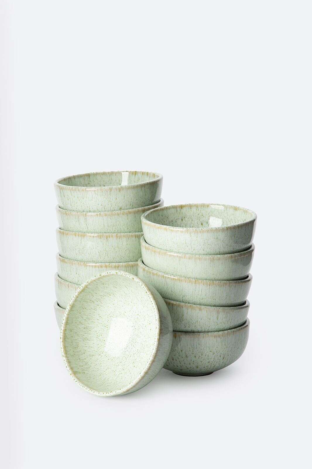 Lichtgroene kom van glanzend keramiek