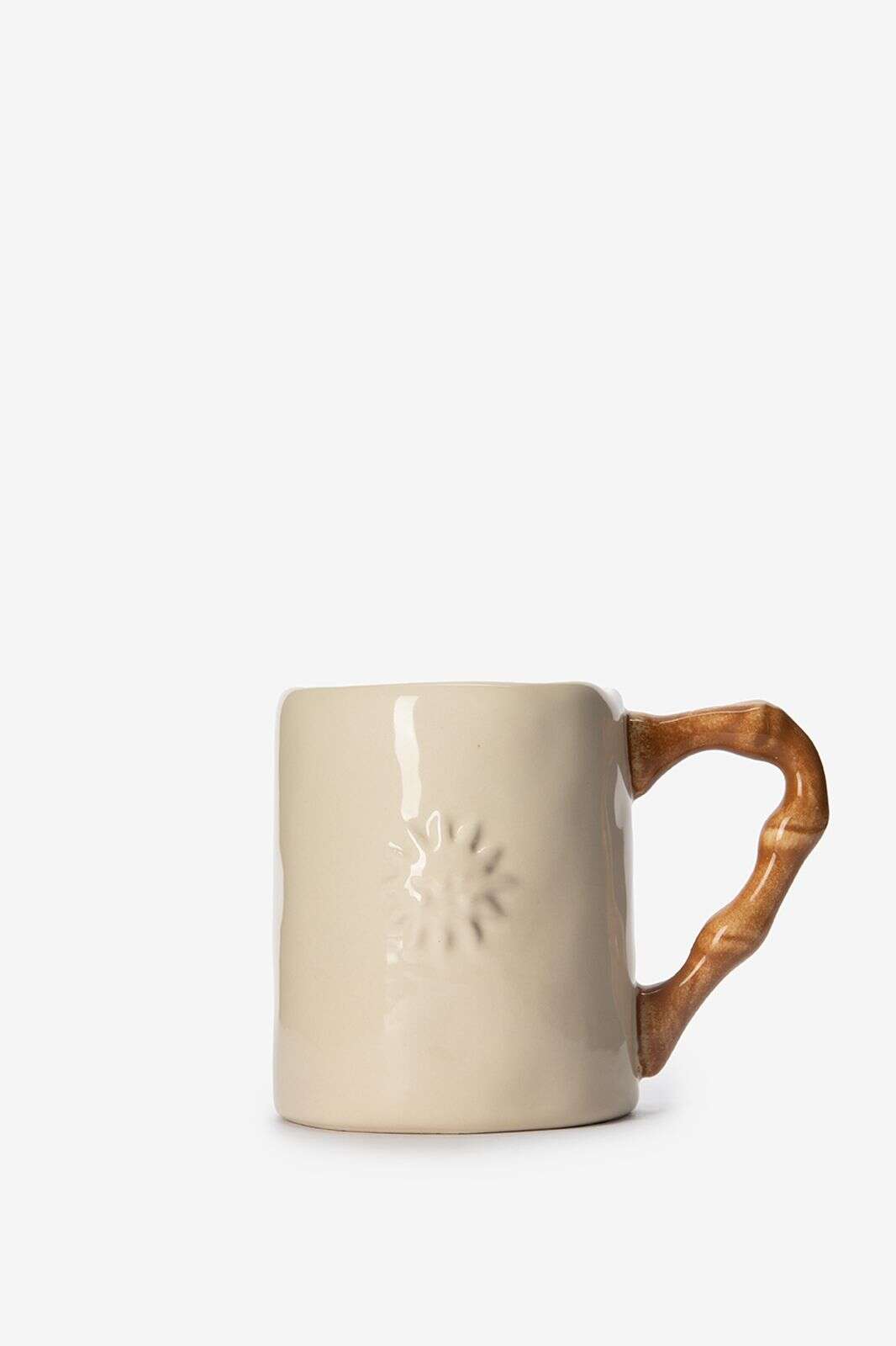 Beige mok met bamboe oor