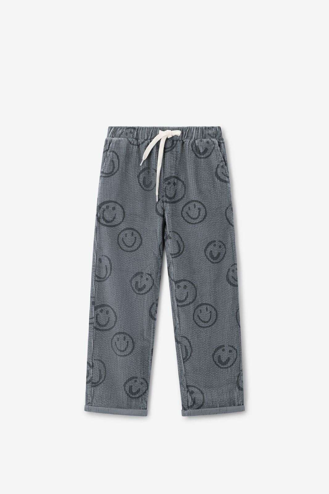 Blauwe corduroy broek met smileys