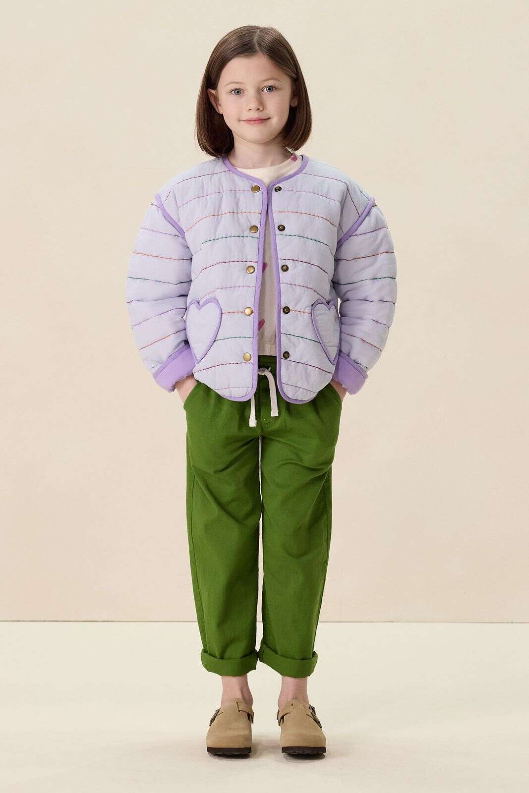 Lichtpaarse padded jack met opgestikte zakken