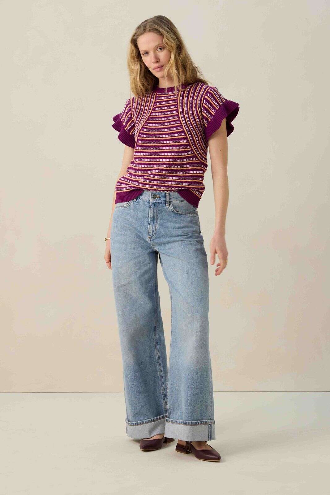 Paars gebreide trui met strepen