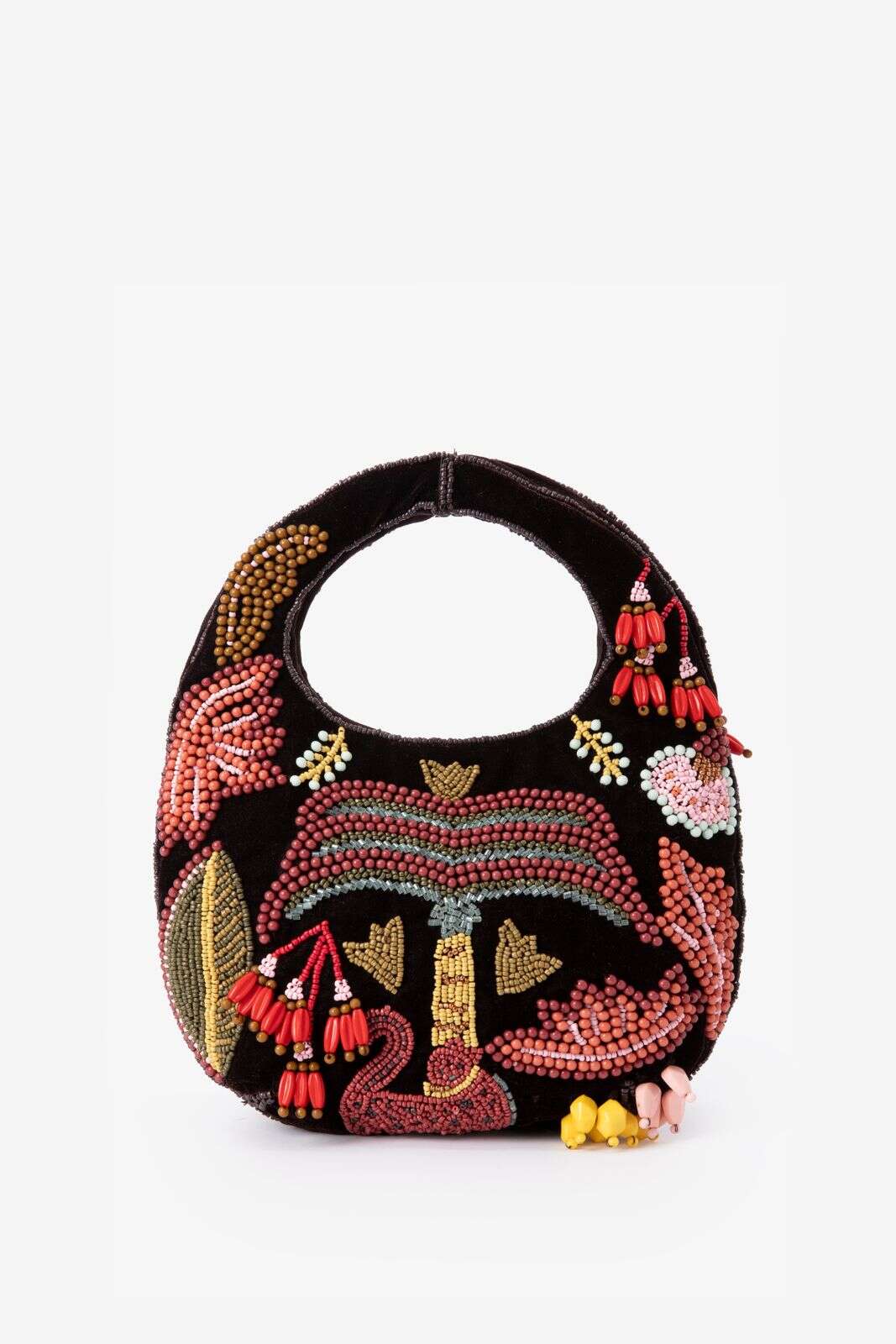 Donkerbruine velvet tas met kraaltjes