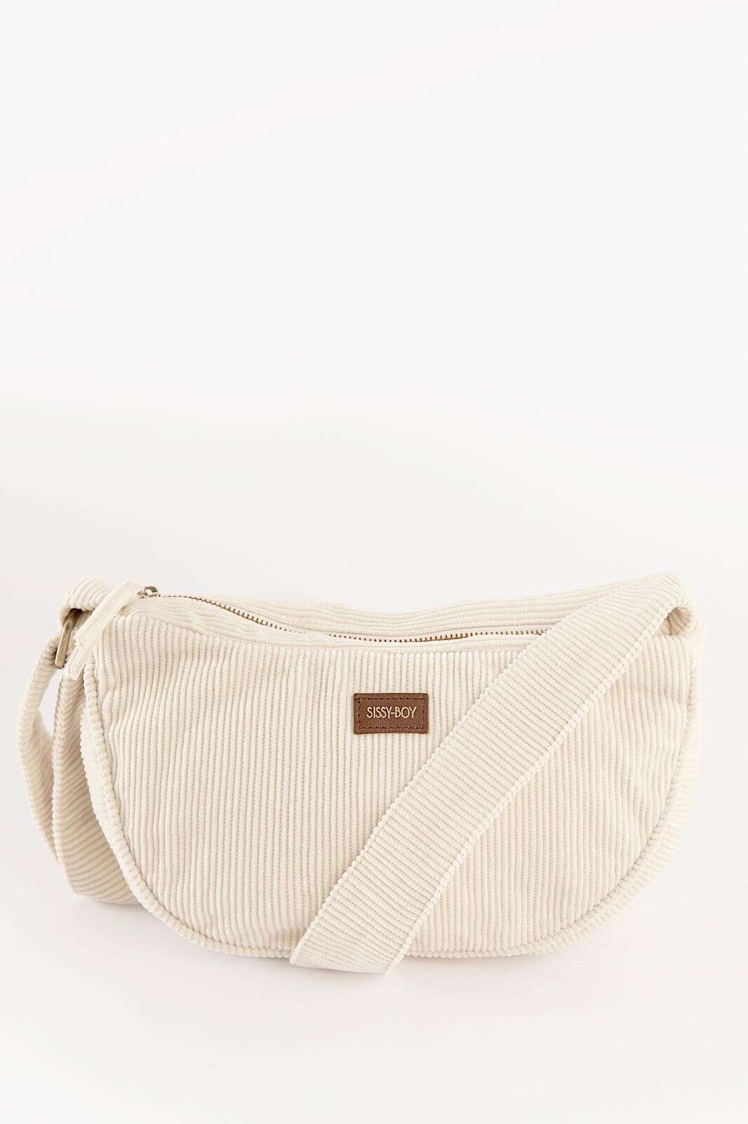 Off white rib cord crossbody tas